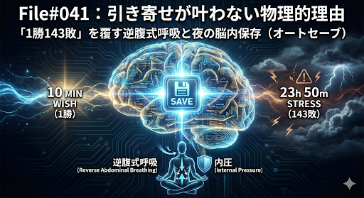 File#041:引き寄せが叶わない物理的理由──「1勝143敗」を覆す逆腹式呼吸と夜の脳内保存(オートセーブ)